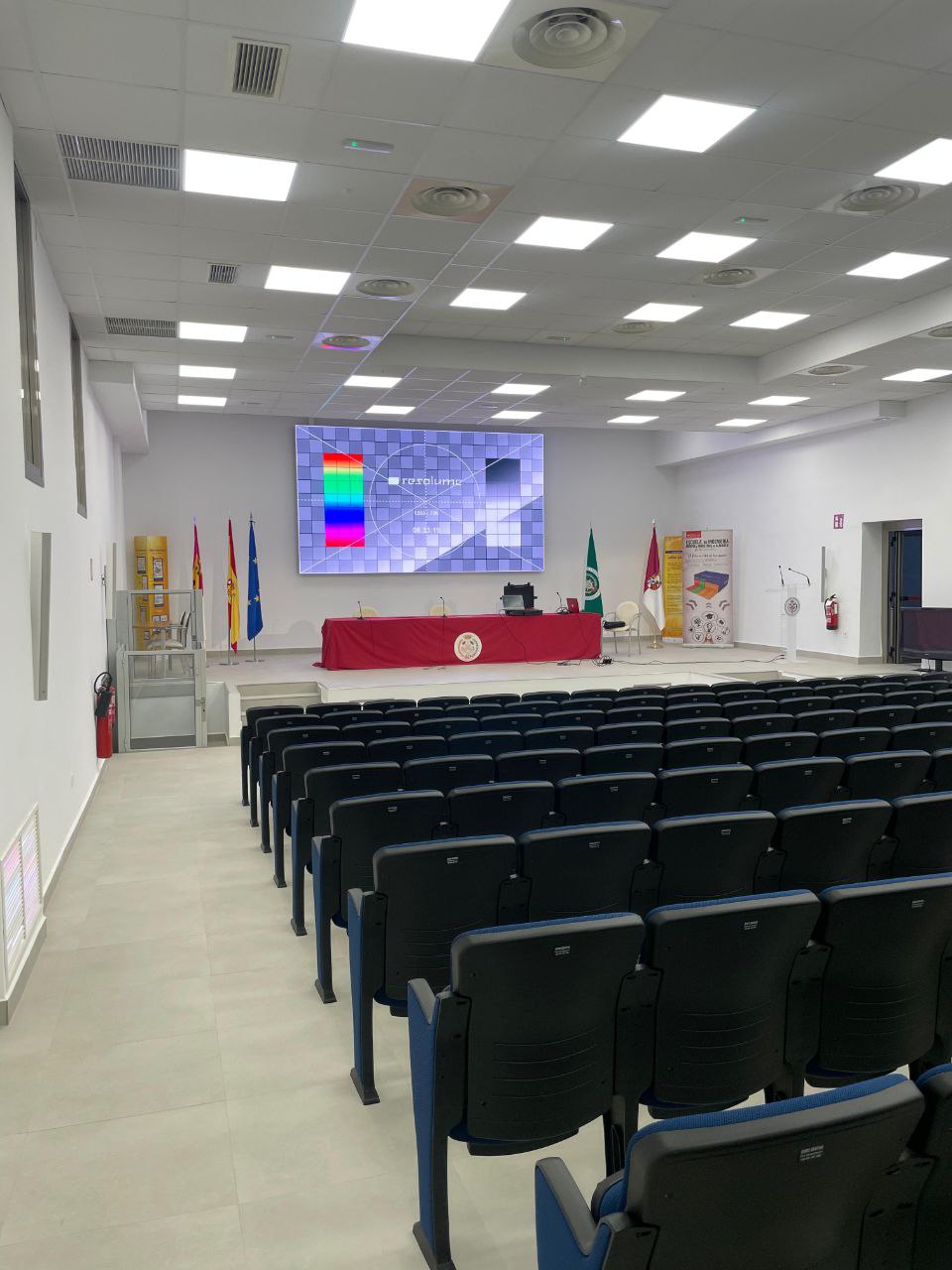 El objetivo principal de esta actuación fue modernizar las instalaciones audiovisuales del auditorio para adaptarlas a las nuevas necesidades docentes, formativas y de eventos institucionales.